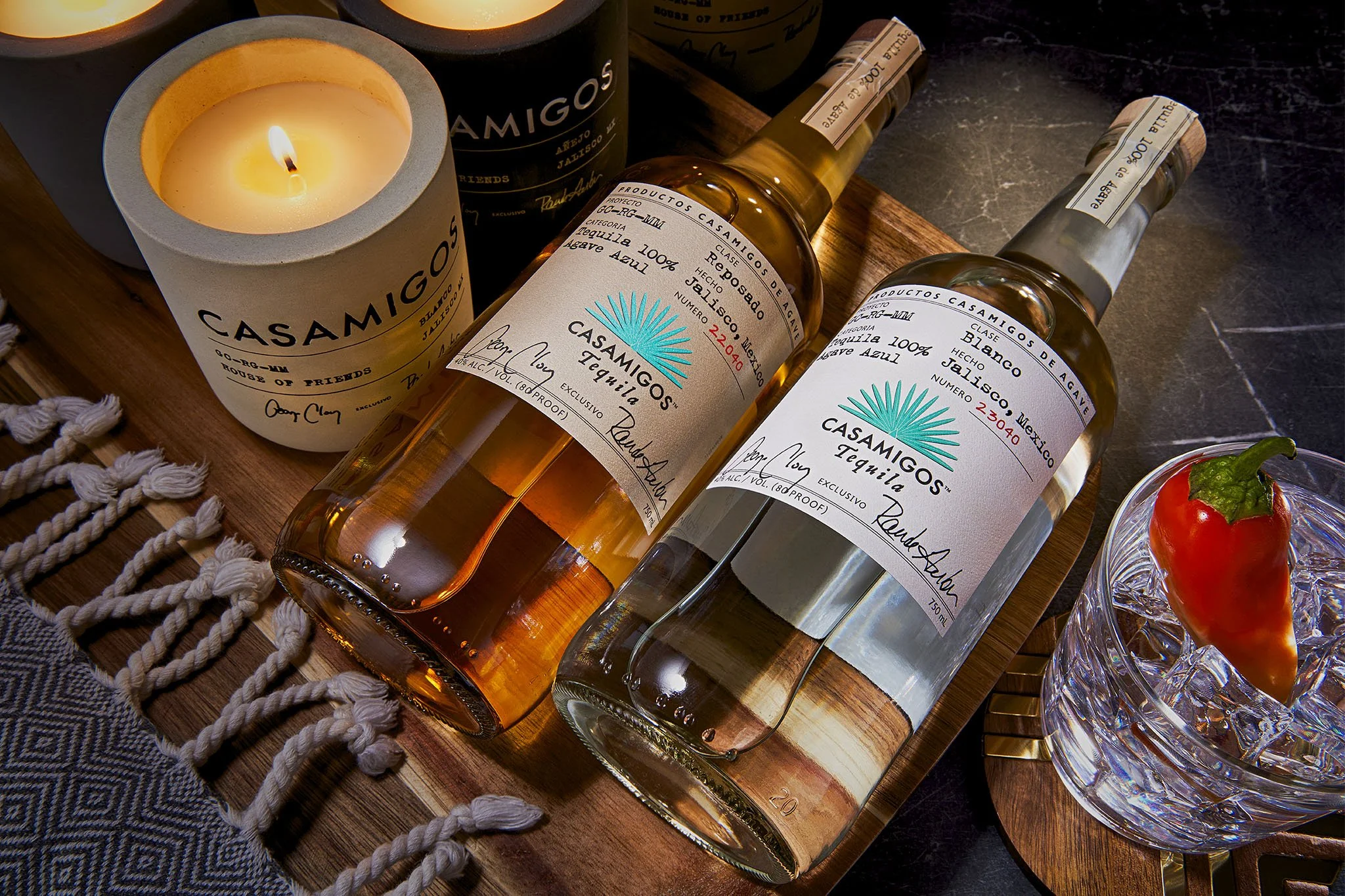 casamigos tequila on a serving tray with Casamigos candles, Professional alcohol and spirits Photography, Jason Barnes, SF Bay Area California, Commercial libations photographer, Local craft distillery photographer, California Local photographer, Nor View fullsize