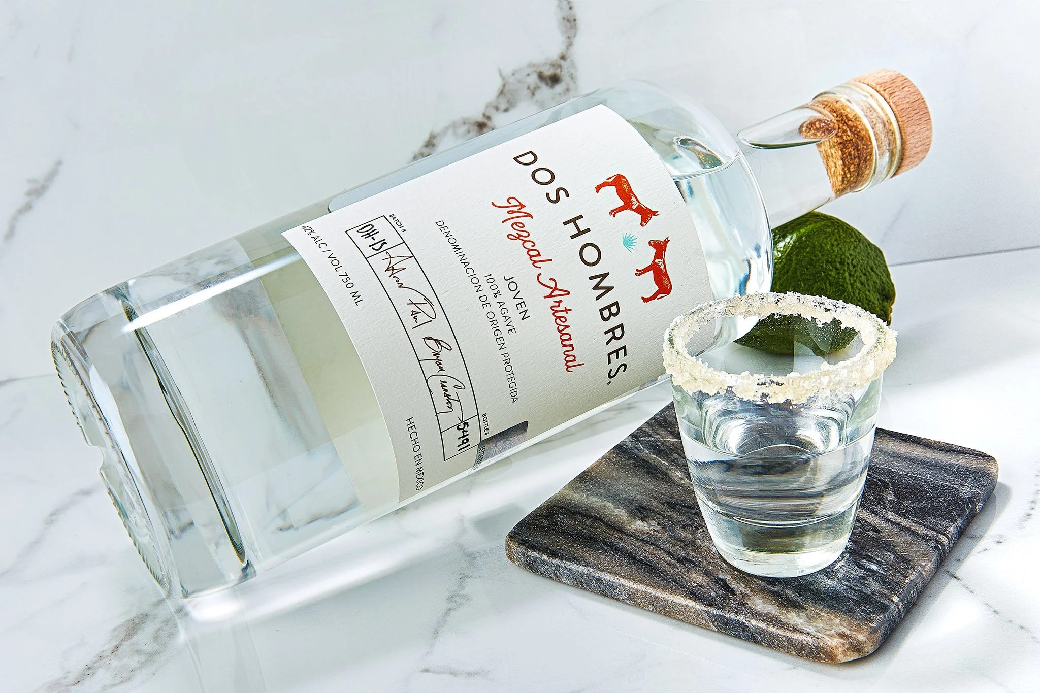 dos hombres, mezcal photo, mezcal bottle, lime, shot glass, photographer near me, jason barnes, two16 photography